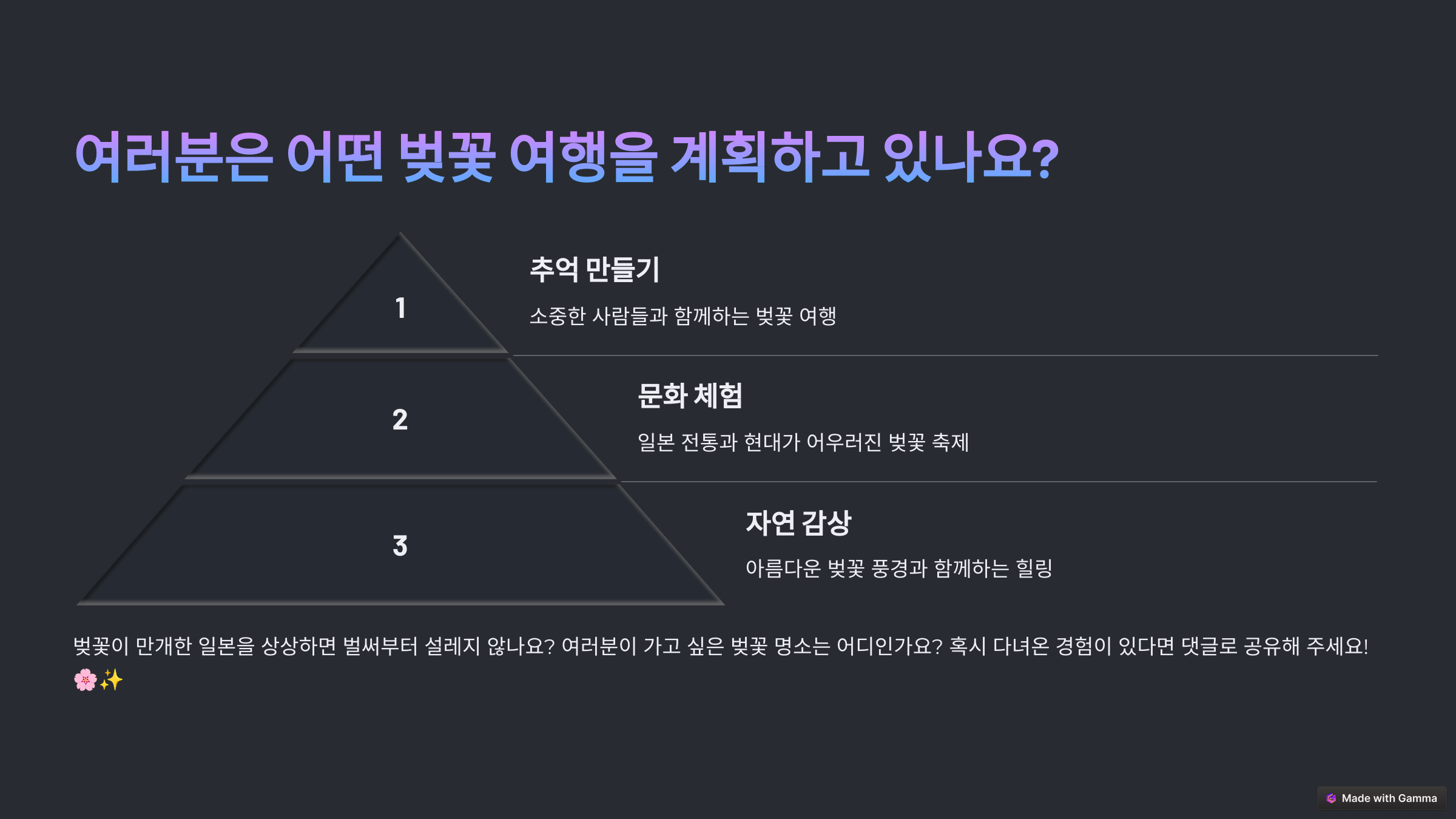 💡 여러분은 어떤 벚꽃 여행을 계획하고 있나요?